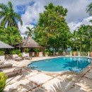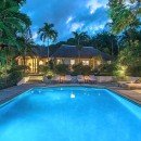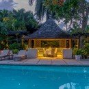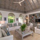 The villa is child friendly with a library of music and films for entertainment. Children may be enrolled in the Pineapple Kids Club at the Round Hill resort. Villa Almond Hill is the perfect choice for memorable destination weddings and other events and celebrations. For larger groups, the villa may be combined with the sister villa Coconut Cottage located within walking distance to provide nine bedrooms, two swimming pools and an extensive staff ready to help you create a memorable tropical vacation. Enjoy the services of a cook, a housekeeper, a laundress, a butler a gardener and a night watchman. There are also two dogs kept on the property; Darby and Derby very friendly guard dogs!