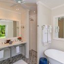 Bedroom 3: Bedroom with a king-size bed (can be made up as two single beds), ceiling fan, A/C, WiFi, en-suite bathroom with bathtub, shower, vanity and WC. 2 guests maximum.