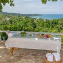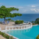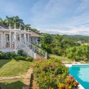 Enjoy 5,000 square feet of living space both outdoors and indoors situated on four beautiful acres. The inviting living room is decorated in soft tones of island colors with stylish sofas and tile flooring. A soaring rafter-and-beam ceiling with lazy ceiling fans cools the room and adds a dramatic architectural touch. Wide doorways open to admit sea breezes and a profusion of natural light. Step outside to the wrap-around verandah, the perfect spot to appreciate jaw-dropping water views. Dine in style in the formal dining room, or opt to be served delicious home cooked meals prepared by your personal chef on the east verandah. Upon request, you may also take your meals under the stars on the cut stone pool terrace that surrounds the 40-foot private pool. Linger over an after-dinner coffee and a Tia Maria, and watch the lights of Montego Bay come up as the sun goes down. The magic of the natural environment is rejuvenating as you enjoy exotic tropical flowers and lush mountain vegetation set against the azure blue of the bay.