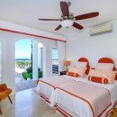 Bedroom 2: Upper floor second Master bedroom with a king-size bed (can be made up as two single beds), A/C, ceiling fan, cable TV, safe, private balcony with views and en-suite bathroom with bathtub/shower combination, vanity and WC. 2 guests maximum.