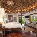 Bedroom 1 - Master Bedroom: Bedroom with a king-size bed, A/C, TV, WiFi, direct access to the gardens, sea view, and en-suite bathroom with bathtub/Jacuzzi, outdoor shower, double vanity and WC. 2 guests maximum.