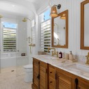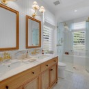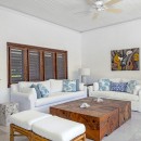 The master suite in the villa comes with a sumptuous four-poster kind bed as well as a sitting area where you can relax. It comes with an ensuite bathroom with a shower, vanity, and whirlpool tub and includes fantastic sea views. The other bedrooms boast king beds, many with extras like walk-in closets.