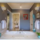 Bedroom 1: Upper floor master bedroom with a king-size bed, small balcony with a commanding view to Round Hill and beyond, cable TV, ceiling fan, A/C and en-suite bathroom with Jacuzzi/bathtub, shower, vanity and WC. 2 guests maximum. The sofa in the living room can convert to a queen-size bed for a third and fourth guest.