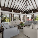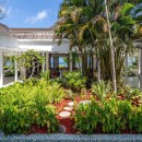 Enjoy an expansive 15,000 square feet of indoor and outdoor living space with a gorgeous stretch of white sand beach right at the edge of the Caribbean Sea. Tall mahogany French doors that open to private porches and lazy ceiling fans add to the ambiance of this outstanding home. The main pavilion features a great room with multiple glass doors leading to a wrap-around verandah. White Jamaican flooring continues uninterrupted for a true indoor/outdoor lifestyle. Cross the Japanese footbridge that arches gracefully over the reflecting pool and find the formal dining room where you can enjoy a candlelit dinner under a crystal chandelier with views of the sea. The adjacent bar is perfect for late night relaxation with friends.