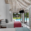 Noble House shares eight acres on the sea with deluxe neighboring villas Serenity and Tranquillity on the Beach. Combining these 3 homes creates a 15-bedroom compound with 3 pools, 1 tennis court, 1 basketball hoop, long beachfront and staff of 19. This remarkable waterfront trio is a favorite for family reunions. All 3 villas are very private from each other, extremely family-friendly and welcome children.