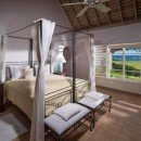 Bedroom 1: Master bedroom with a four-poster king-size bed, walk-in closet, dressing room, access to pool terrace and gardens, ocean views and en-suite bathroom with shower, bathtub-for-two Jacuzzi, vanity and WC. 2 guests maximum.