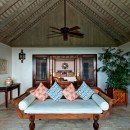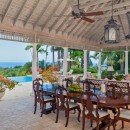 Guests will find the villa a harmonious medley of high vaulted ceilings, natural cut stone floors, wide plank mahogany flooring in the bedrooms and exceptional architectural elements like the series of graceful Palladian arched doorways leading from the living room to the outdoor verandah. A full staff including a butler, a personal chef and a laundress will serve you. Request a fabulous meal on Limoges and Villeroy & Boch tableware with fine linen, crystal and silver for a memorable al fresco dining experience overlooking the sea.