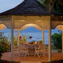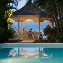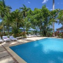 Villa Tranquillity is fully staffed with a personal butler, chef, housekeeper and laundress. Enjoy freshly prepared meals in the formal dining room, on the verandah or in the beautifully designed waterfront gazebo for a romantic dinner for two. As you gaze out at the water you may catch a glimpse of local fishermen with torches and nets to capture the fish that might appear on your menu the next day. Guests will enjoy a private pool with a pool deck surrounded by colorful tropical hibiscus and the main house surround sound system extends to the speakers beside the pool. A tennis court is shared with the villa next door. Without a doubt, the 100-yard white sandy beach with its offshore coral reef is the highlight of this glorious villa. Use the complimentary sea kayaks to explore the shoreline, and snorkel to discover the underwater world.