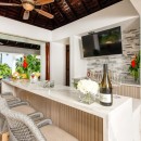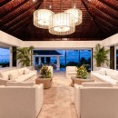 Upon arrival, a picturesque palm-lined driveway guides you to an inviting foyer and a sprawling great room offering breathtaking Caribbean Sea vistas. Retractable doors seamlessly merge the great room, dining area, bar, breakfast nook, pool deck, and gazebo, creating a seamless flow between indoor and outdoor spaces.