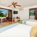 Bedroom 5: Bedrooms with two queen-size beds, ceiling fan, A/C, WiFi, TV, private veranda and en-suite bathroom with shower, double vanity and WC. 2 guests maximum