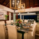 Evenings at Trinity offer a diverse range of experiences. You can relish sunset cocktails at the gazebo, enjoy serene dinners on the terrace or by the lower pool, partake in elegant candlelit dining in the formal dining room, or have an unforgettable family movie night in the spacious media room with its impressive 80-inch television. Whatever your preference, Trinity and its attentive staff are ready to turn your vacation dreams into reality.