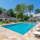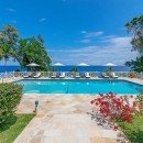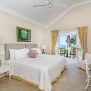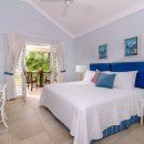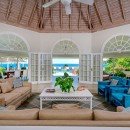 There’s plenty of living area inside the villa, but outside there is a sun terrace that goes around the pool and heads out toward the ocean. The poolside and lawn are vast and offer room for up to eight guests at a function or gathering and lead right to the water. Guests can also make use of the staff at the villa, including a butler, gardener, pool person, chef, and a daily housekeeper. There’s also a spacious kitchen for those who prefer to prepare food on their own.