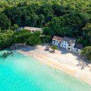 The estate is divided into two buildings with the main house featuring the common living areas and 3 bedrooms on the second floor. The former schoolhouse is located directly on the beach and features 3 bedrooms.