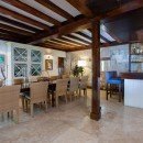 A well-designed renovation provides stylish contemporary furnishings and crisp white fabrics that blend well with the original architectural details. The ground floor is divided into sections by floor to ceiling book cases, with an inviting dining room and chic bar on one side and a living room on the other where you can take advantage of cable TV, games and music. Guests will discover beautiful Italian travertine flooring and Euro style ensuite bedrooms set against rough stone walls with gun slots reminiscent of the days when the fort defended against pirates and invaders. Cannons on the lawn reinforce the mood.