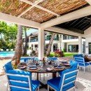 Arrive at the helipad and enter through the electronic gate to discover the impressive villa entry with stately lions, koi and lily ponds. Villa Malatai offers every amenity onsite for a carefree vacation in paradise. Enjoy the services of a full staff, including two chefs, housekeepers and a laundress. For those who love an active vacation, there is complimentary snorkeling gear and sea kayaks on the premises. Challenge a friend to a tennis match on the private court, cool off in the pool and work out in the air-conditioned fitness room with a treadmill, bench, spinning bikes and free weights. The outdoor gazebo features a pool table and a ping pong conversion top, lighted for nighttime play. Or just relax in the hot tub and on the terrace with a rum punch from the outdoor bar while savoring views of the turquoise waters of the sea. Enjoy a teak party deck with a barbecue for outdoor entertaining, or take your meals seaside on the lawn and on the private verandah.