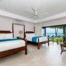 Bedroom 4: Upper floor bedroom with two queen-size beds, A/C, TV, safe, terrace with ocean view and en-suite bathroom with shower, double vanity and WC. 2 guests maximum.