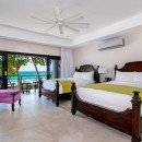 Bedroom 7: Upper floor bedroom with two queen-size beds, A/C, TV, safe, terrace with ocean view and en-suite bathroom with shower, double vanity and WC. 2 guests maximum.