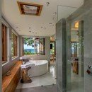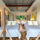 Promiseas 2 boasts unique touches like a central glass atrium in the living room with a majestic Teak tree growing through its open top, a third-floor treehouse-style bedroom, and breathtaking sea views from the living room.