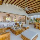 The two side-by-side Promiseas Villas, each offering four bedrooms, are beautifully decorated with an exquisite use of local woods like Modern Teak, Guango, Spanish Elm, and driftwood. These materials add natural charm and elegance to the properties.
