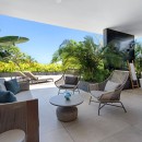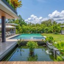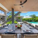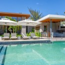Reverie stands as a secluded haven, a sprawling 8,500-square-foot villa nestled on an acre of lush tropical land within a tranquil bay community along the esteemed shores of the northern coast. Its design seamlessly merges indoor and outdoor spaces, with walls of doors that effortlessly open, immersing guests in a Zen-like ambiance.