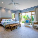 Bedroom 1: Upper floor Master bedroom with a king-size bed, ceiling fan, A/C, TV, WiFi, safe, private terrace, private garden with bathtub, and en-suite bathroom with shower, vanity and WC. 2 guests maximum.