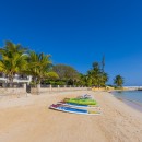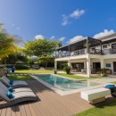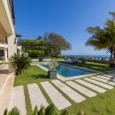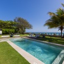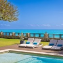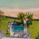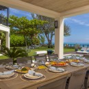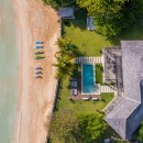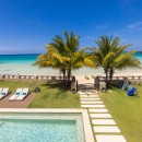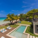 The villa boasts two en-suite bedrooms on the ground floor, each opening onto the terrace, while three additional en-suite bedrooms grace the upper level, all of which lead to a long first-floor balcony overlooking the pool and beach. This balcony is the perfect place to savor your morning coffee or relish in breathtaking sunsets with a refreshing sundowner.
