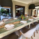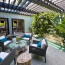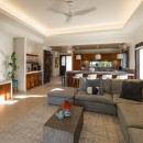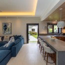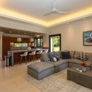 Step into the contemporary space adorned with a serene and restorative palette, featuring Jamaican artisanal work. The villa welcomes you with a unique atrium surrounded by shallow water, providing a tranquil spot for evening drinks. Discover a dining room adjacent to the professional kitchen, a cozy sitting room, and a bar area that seamlessly opens to the expansive terrace with various seating areas and al fresco dining options.