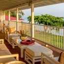 Two bedrooms are on the upper level, along with a sitting room and a veranda that spans the front of the property. Dining and living areas with comfortable furniture are also on this level. It’s a great location for playing cards, reading a book, or just a bit of relaxation.