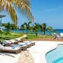 With both upper and lower level verandas, there’s lots of comfortable seating for the whole group. Chaise lounges can be found along the beach and on the pool terrace to offer excellent views of the entire area. Guests can pass through the gardens to reach the entrance hall, with Caribbean architecture and a glimpse of the sea.