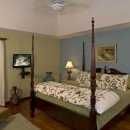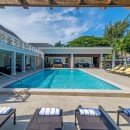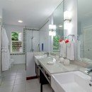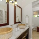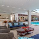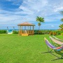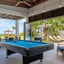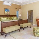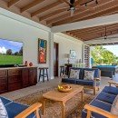 There is a wet bar and covered verandah beside the expansive 40-foot swimming pool, a shady spot to chat with a friend and enjoy a cooling afternoon drink while listening to music on the surround sound system. The sweeping lawn is surrounded by colorful bougainvillea, coconut palms and banana trees and provides a place for badminton and volleyball. Families with children will appreciate the area for playing. Keep up with your fitness regimen in the air-conditioned gym featuring a treadmill, elliptical equipment, spinning cycles, free weights and balls as you are entertained by a TV with DVDs. After your workout, relax in the hammock under a spreading tree with cascading yellow flowers as you enjoy island breezes.