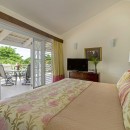 Bedroom 4: Upper floor bedroom with a king-size bed, balcony with ocean views an en-suite bathroom with Jacuzzi bathtub, walk-in shower, vanity, bidet and WC. 2 guests maximum.
