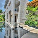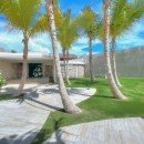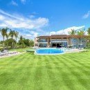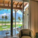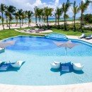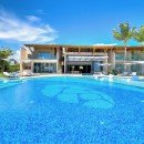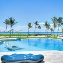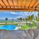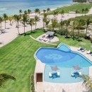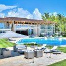 Villa Arrecife 15 - Villa Tartaruga, Punta Cana. Located on the gorgeous beaches of Arrecife, Punta Cana, Arrecife 15 -Villa Tartaruga offers eight bedrooms, eight bathrooms, and an extra powder room. The villa has room for up to 16 guests of all ages and is one of the newest additions to the Puntacana Resort & Club. Offering true oceanfront living, the villa starts with a long main entrance that takes you through an extended corridor near rounded white columns near a pristine blue pond and up to the cubic façade of the two-story villa.