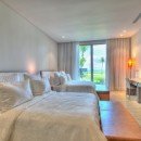 Bedroom 4: First floor bedroom with two queen-size beds, A/C, TV,  private terrace with ocean view and en-suite bathroom with shower, vanity and wc. 2 guests maximum