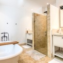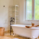 Bedroom 2: Bedroom with a king-size bed, ceiling fan, A/C, WiFi, and en-suite bathroom with bathtub, shower, vanity, and WC. 2 guests maximum.