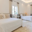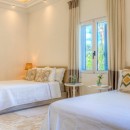 Bedroom 7: Bedroom with two double beds, ceiling fan, A/C, WiFi, and en-suite bathroom with shower, vanity, and WC. 2 guests maximum