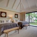 Bedroom 6: Bedroom with two queen-size beds, A/C, TV, WiFi, private terrace, access to the garden, walk-in closet and en-suite bathroom with shower, vanity and WC. 2 guests maximum