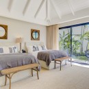 Bedroom 6: Bedroom with two queen-size beds, A/C, TV, WiFi, private terrace, access to the garden, walk-in closet and en-suite bathroom with shower, vanity and WC. 2 guests maximum