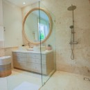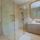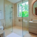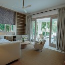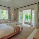 Bedroom 6: Bedroom with a queen-size bed, ceiling fan, A/C, TV, WiFi, access to the garden, and en-suite bathroom with shower, vanity, and WC. 2 guests maximum