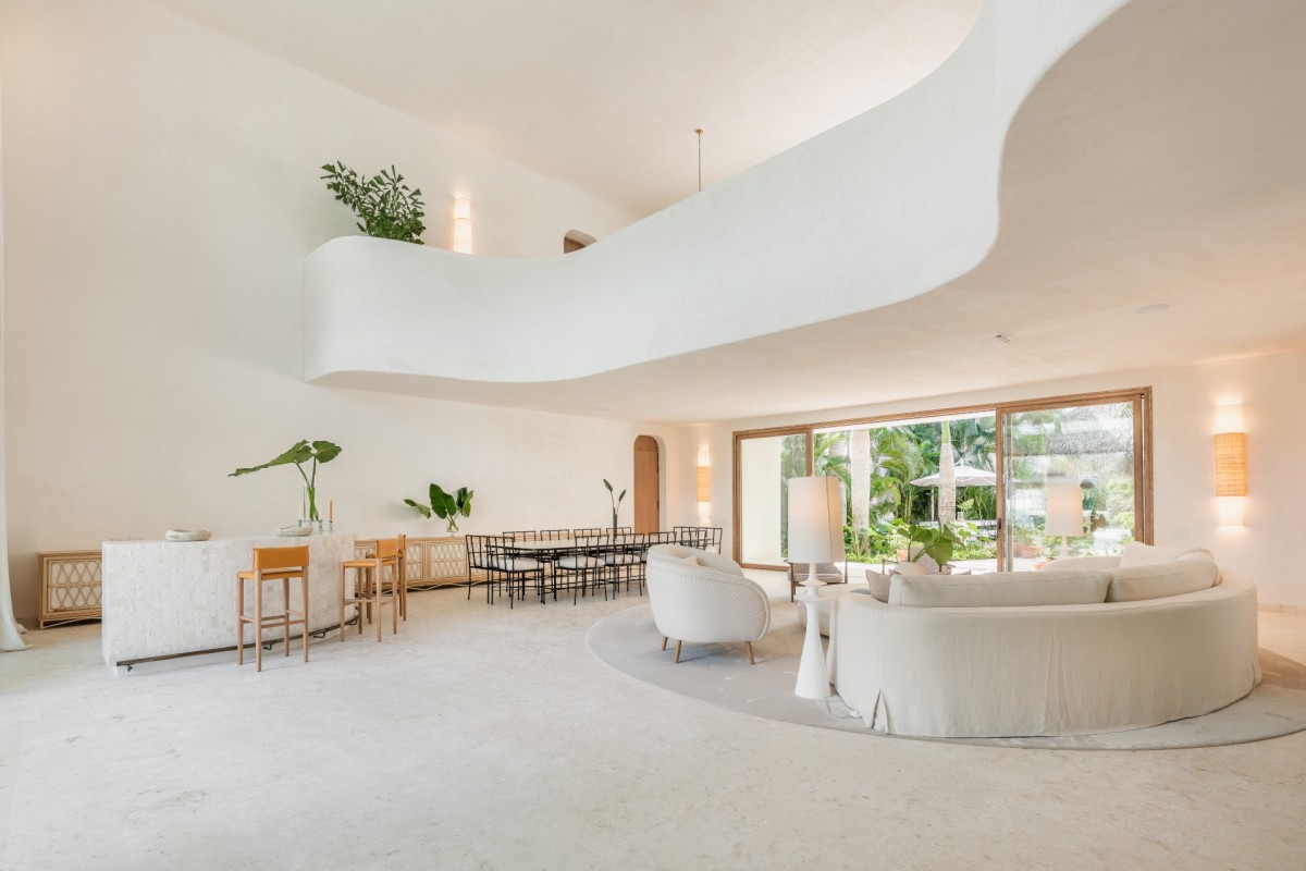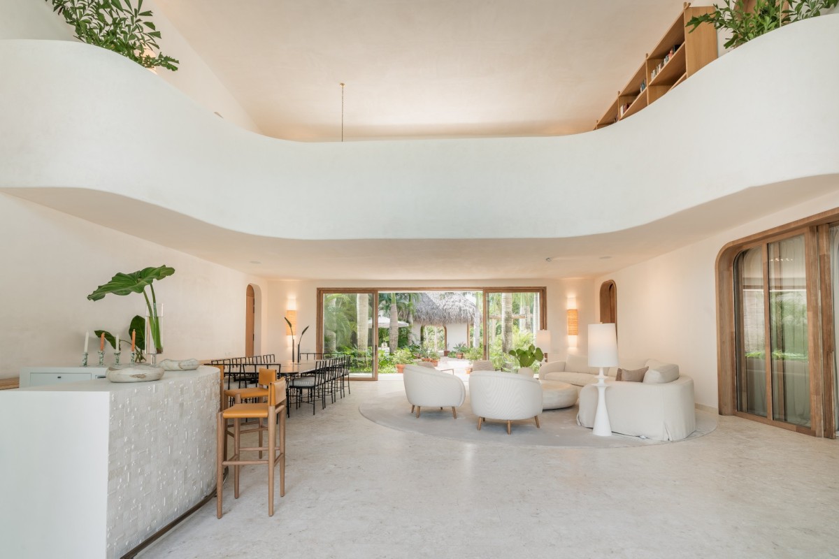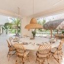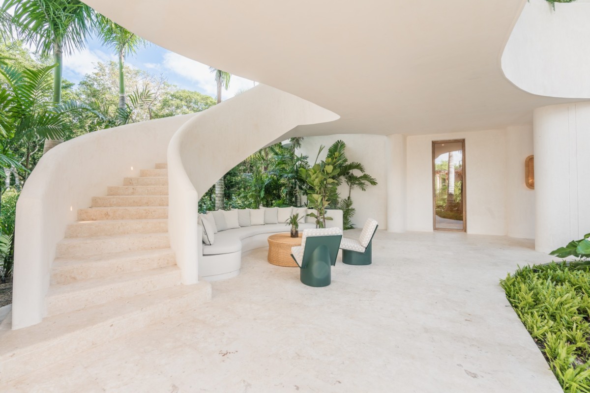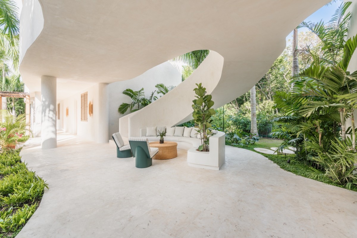Inside, Villa Samán features seven luxurious suites, each equipped with its own private bathroom. Elegant design elements, including graceful curved staircases and a picturesque interior courtyard, enhance the villa’s charm. Guests can enjoy al fresco dining in the outdoor dining area, surrounded by lush gardens and vibrant tropical plants—ideal for evening gatherings and memorable meals under the stars.
