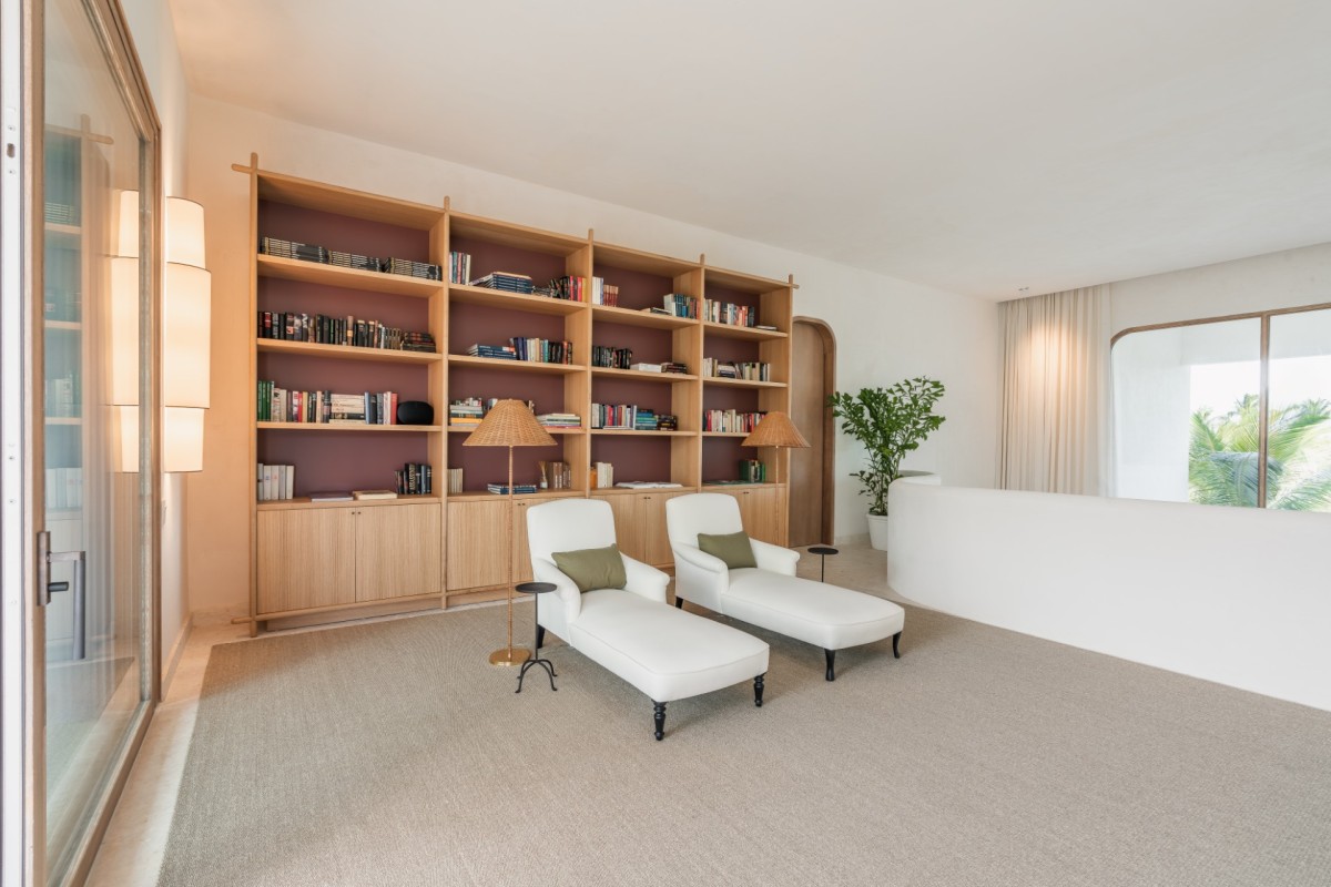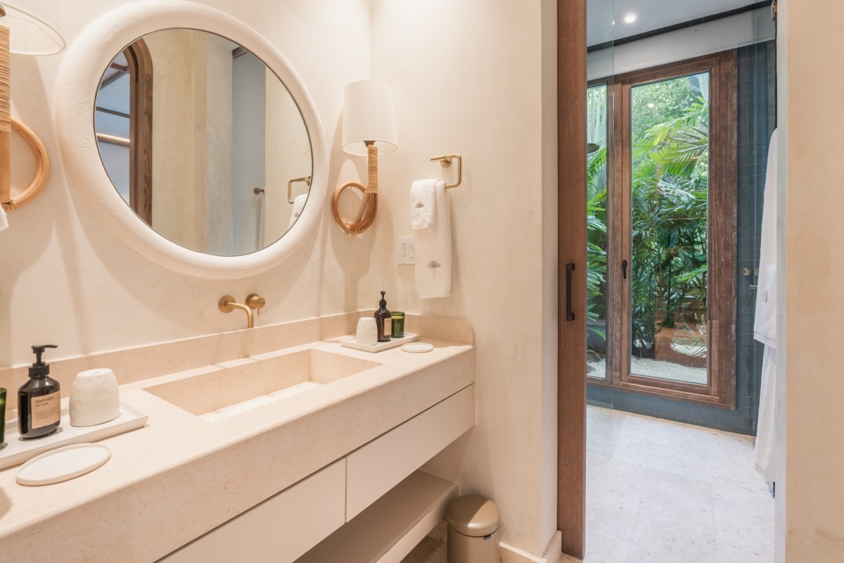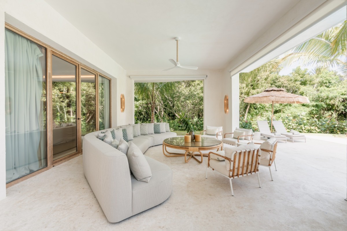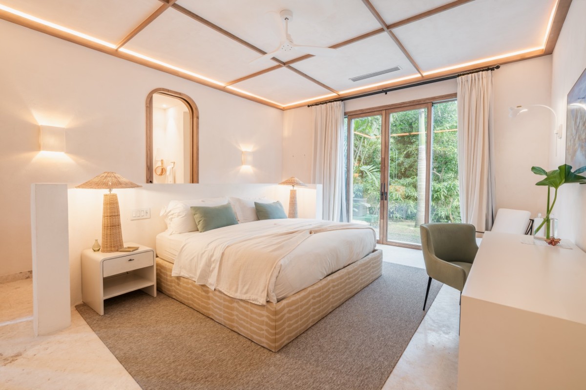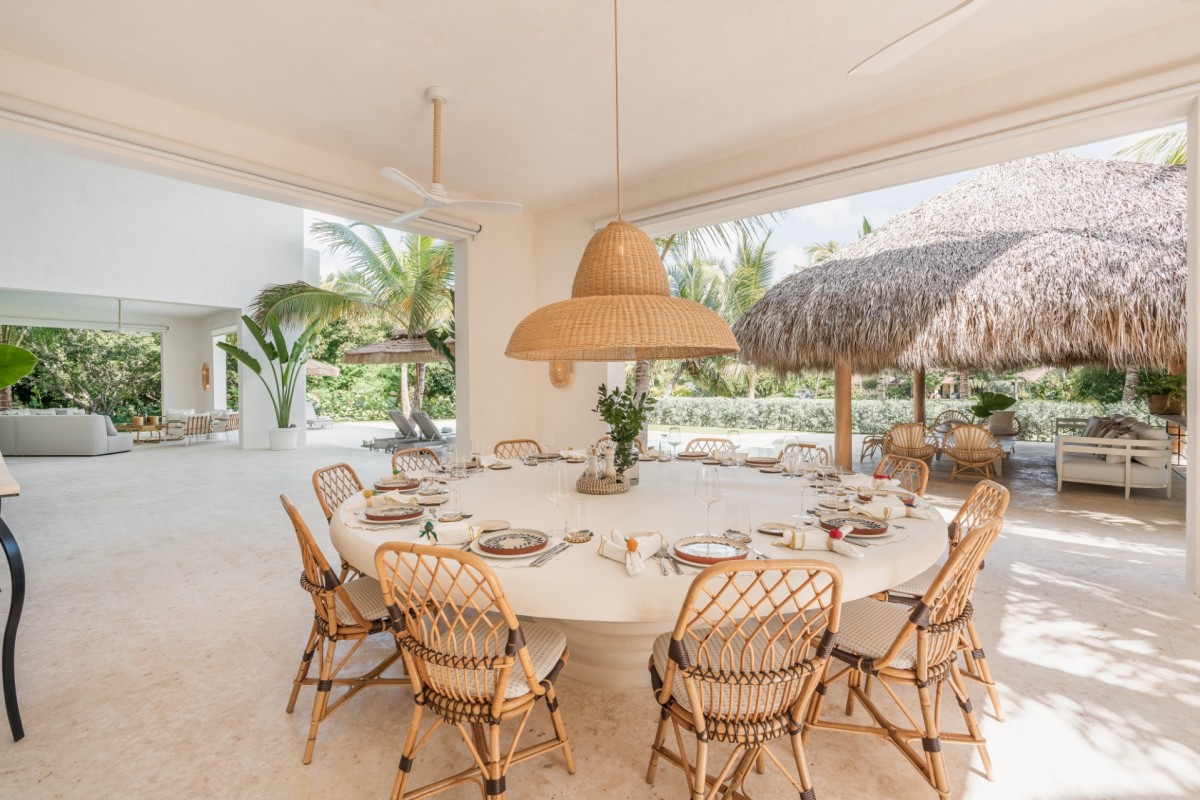 Inside, Villa Samán features seven luxurious suites, each equipped with its own private bathroom. Elegant design elements, including graceful curved staircases and a picturesque interior courtyard, enhance the villa’s charm. Guests can enjoy al fresco dining in the outdoor dining area, surrounded by lush gardens and vibrant tropical plants—ideal for evening gatherings and memorable meals under the stars.