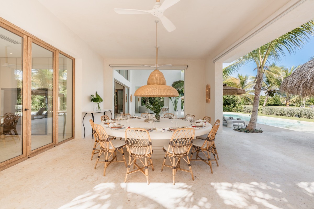At Villa Samán, nature meets European design. From the moment you arrive, you’ll be welcomed by beautifully landscaped gardens and open outdoor spaces that create a tranquil and inviting atmosphere. The villa’s contemporary architecture perfectly complements its tropical surroundings, offering guests an extraordinary sense of peace and sophistication just minutes from the beaches of Punta Cana.