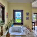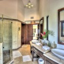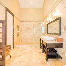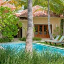 Villa Arrecife 23 is a four-bedroom gem in classic Spanish Colonial style, with upper and lower terraces, countless arches, terra cotta roof tiles, and lush gardens for privacy. The expansive pool terrace features a waterside pavilion with a full dining room, bath, rooftop terrace, and covered lounge. The pool’s unique entrance includes an inches-deep platform leading to a spa tub or the main pool. Inside, the grand atrium with wrought iron details creates a warm welcome, while the great room, full kitchen, and outdoor portico provide multiple spaces for lounging and dining.