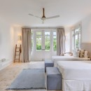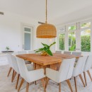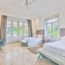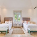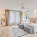 Indoors you will adore the tropical inspired decor. The neutral colors are interwoven with navy accents and fresh tropical greenery. The square dining table can seat everyone in your vacation party so that you can enjoy meals as a group if desired. The cool white and gray kitchen is modern and sleek with the stainless steel appliances. The bedrooms, which are spread between the main house and the guest house, are all creamy neutrals and pastels that give you a very soothing place to retire to at the end of the day. There is plenty of room for everyone with 3 king-sized beds, 4 double beds, and 2 single beds.