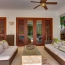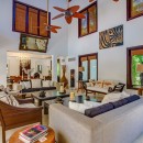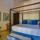 Of course, you can also enjoy spending every moment at your villa because it has so much to love. At the heart of this four-bedroom masterpiece is the semi-circular pool terrace. Framed in native stone and offering several sun decks, it is an ideal spot to catch some rays or even recline and enjoy hours of stargazing. With two-story balconies around the entire property, everyone has a view of the pool and gardens. There are many al fresco dining and lounging spots in addition to more formal areas beneath the verandah. There is a bar and outdoor cooking area, too.