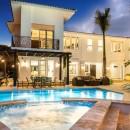 This impressive two-level home boasts a striking horseshoe-shaped design. With 8 spacious bedrooms featuring en-suite bathrooms, queen and king beds, ample closet space, flat-screen TVs, and air conditioning, it comfortably accommodates large groups of friends or several families. Three master bedrooms, one on the ground floor and two on the first floor, each offer a king-sized bed. The remaining five bedrooms are equipped with a queen bed each. The ground-floor master bedroom provides direct access to the pool area, while the first-floor master bedrooms feature balconies with stunning views of the pool and the adjacent lake.