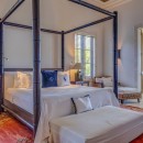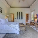 Bedroom 5: First floor bedroom with 2 full-size bed, A/C, ceiling fan, TV, access to gardens and en-suite bathroom with shower, double vanity and WC. 2 guests maximum.