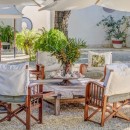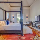 The villa is comprised of 3 buildings surrounding an elegant French courtyard, the setting for elegant outdoor dining. The estate features six bedrooms and seven bathrooms. Each building be home to two bedrooms. The open floor plan coupled with high ceilings allows you to come and go throughout several comfortable lounging areas as you please. Soak up the warm breeze on the lower patio, or hang out on the upper balcony that overlooks the pool. Or cozy up inside to enjoy your family, watch a movie, or simply shut away the world for a time.