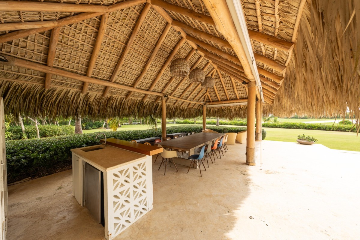 Perched above one of the resort’s scenic golf courses, the villa boasts stunning views and lush surroundings. From nearly every angle, guests are treated to sweeping vistas of green fairways and tropical landscapes. A household butler and host are on hand to ensure a seamless and relaxing stay, while the villa itself is loaded with amenities. Highlights include a large private pool with furnished sundecks, a spacious outdoor gazebo ideal for dining or lounging, and a private bar area that adds to the resort-style experience.