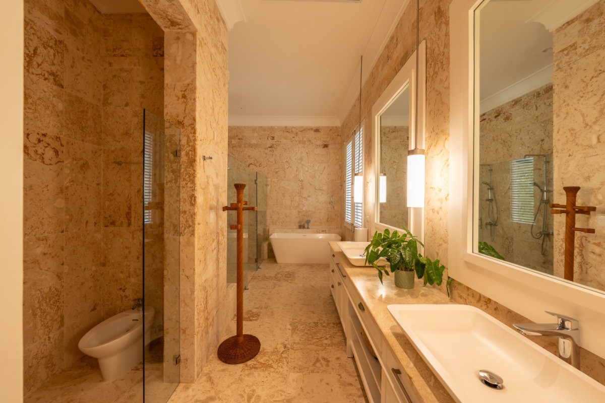 Inside, the villa continues to impress. A gourmet kitchen, formal dining areas, and open-air lounges create an inviting atmosphere for entertaining or relaxing. Natural stone finishes, stylish décor, and well-manicured gardens all work together to create a tranquil environment. The villa’s bedrooms, which range from king to queen suites, are all ensuite and feature high-end linens, entertainment systems, and access to the surrounding views or gardens.
