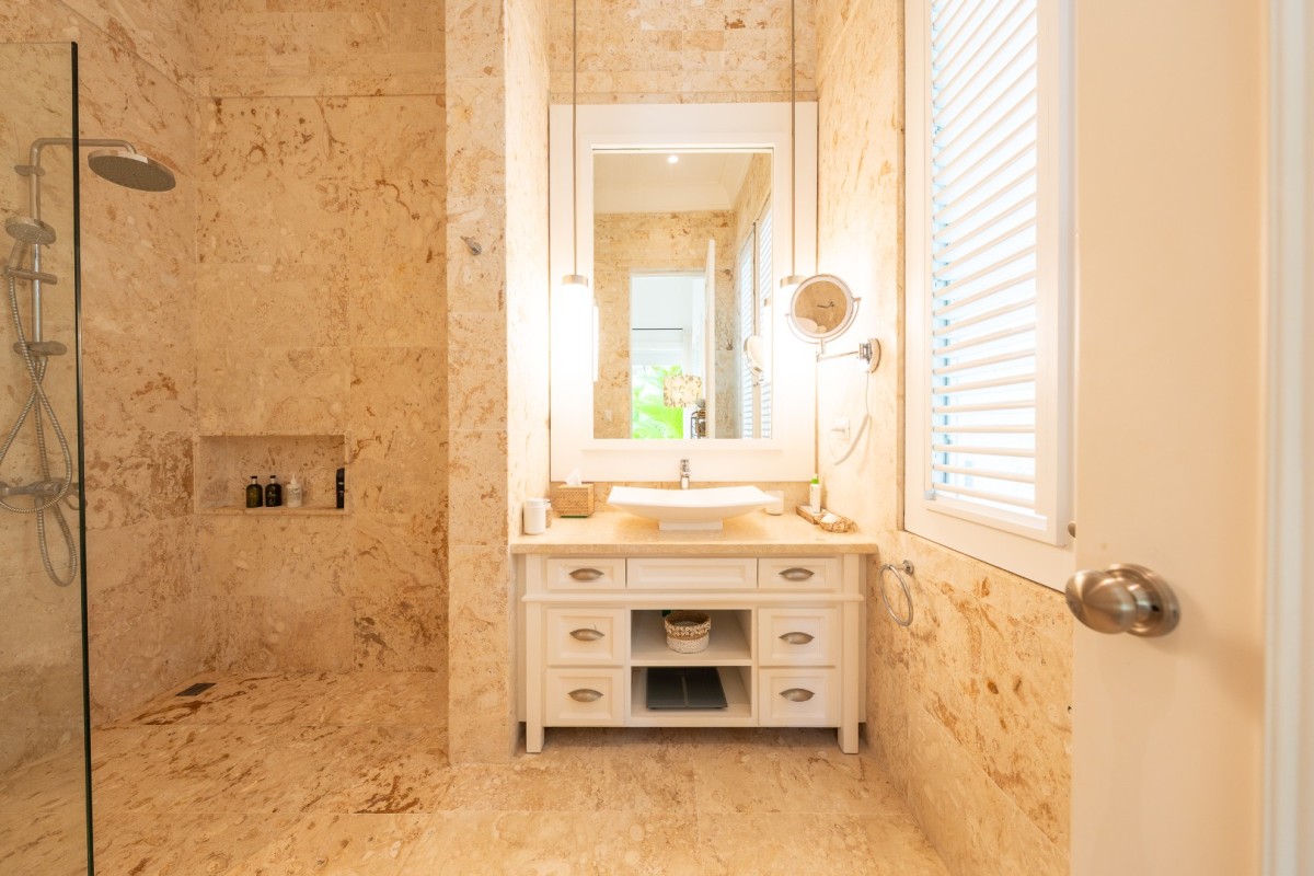 Bedroom 4: Bedroom with two queen-size beds, A/C, TV, safe and en-suite bathroom with shower, vanity and WC. 2 guests maximum.